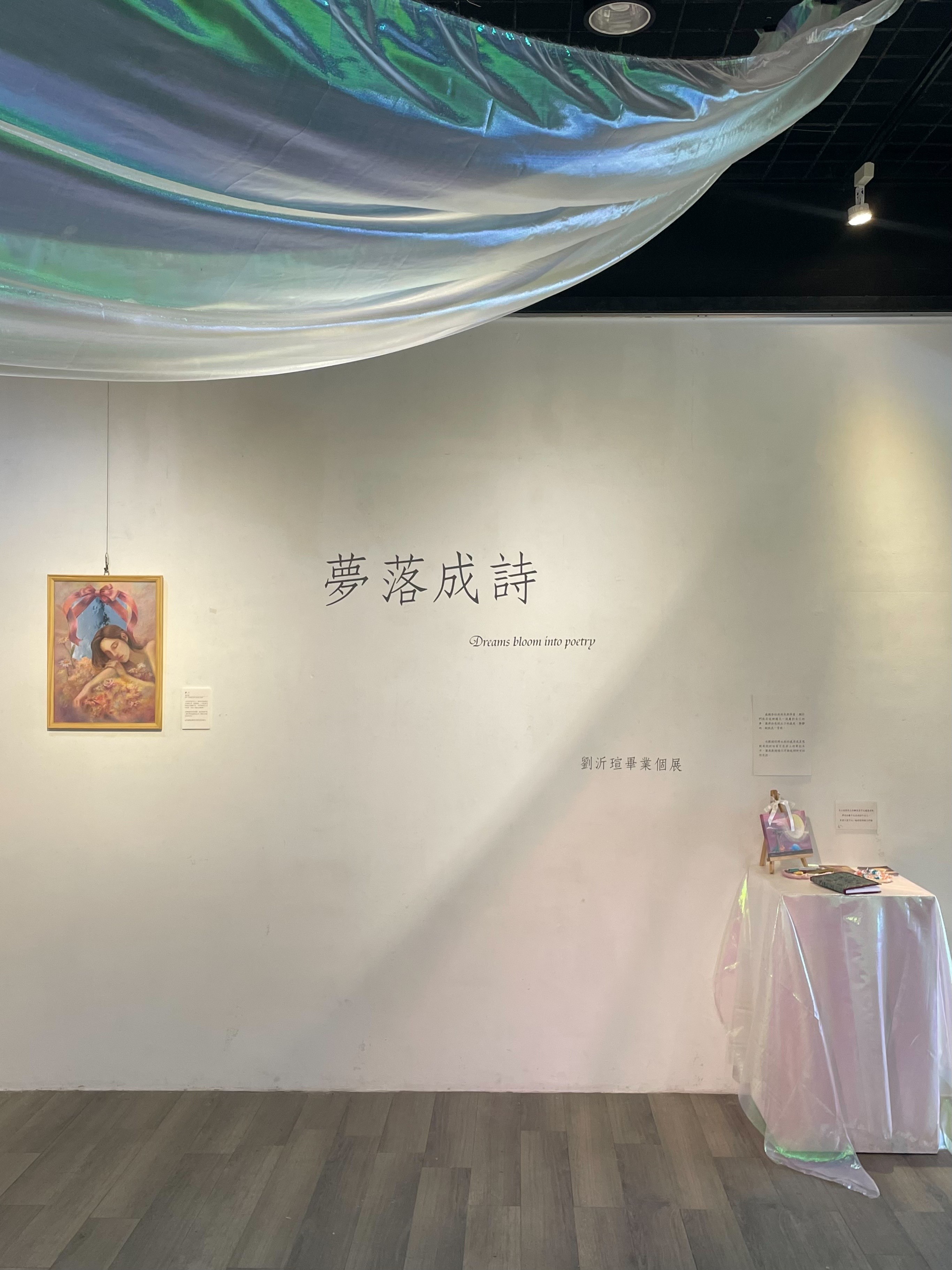 This exhibition, titled “Dreams Bloom into Poetry,” explores the interplay between dream imagery and poetic expression through painting, as a means of tracing the flow and transformation of inner emotions and moving toward self-healing. The works primarily draw upon motifs derived from dreams and poetic texts, employing a soft and hazy visual language to construct a transitional space between reality and the unconscious, where the boundary between the two is gently blurred. Through the interweaving of image and text—including poetry and artwork descriptions—the artist transforms ineffable emotions into perceptible forms, while opening up a dialogue between the viewer and their own lived experience. In this process, viewing becomes an act of self-projection and emotional awareness.